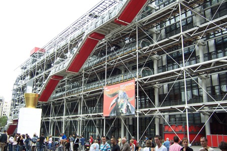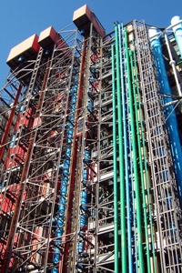 right: part of the Pompidou Centre's rue Beaubourg exterior.