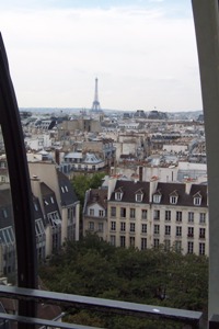Two Paris landmarks as seen from the Pompidou Centre. Left: the