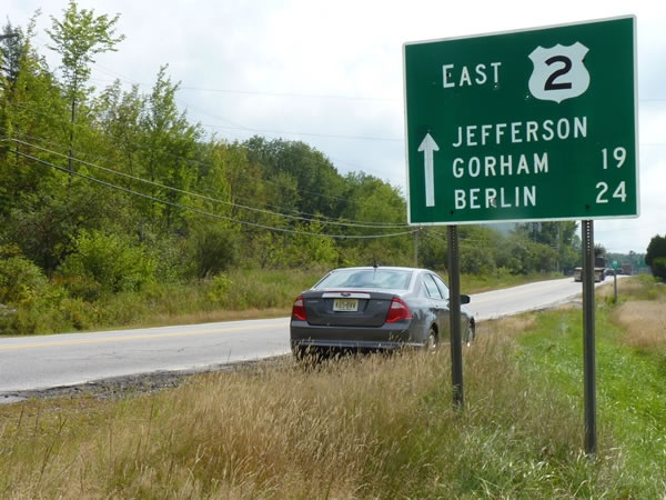Heading east on US federal highway 2 towards Gorham, New Hampshire.