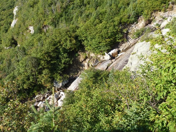 After only twelve minutes back on the trail, I looked down onto a narrow waterfall cascading down the Little Headwall.