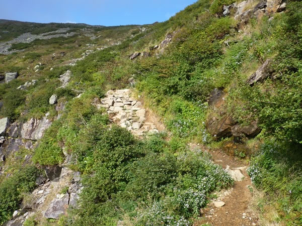 The trail as it wends its way above the headwall’s cliffs.