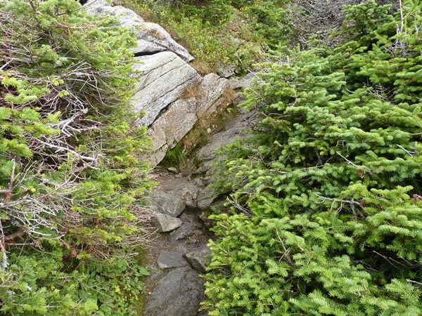 … but occasionally the trail passes through short sections that are fringed by shrubs and stunted trees.