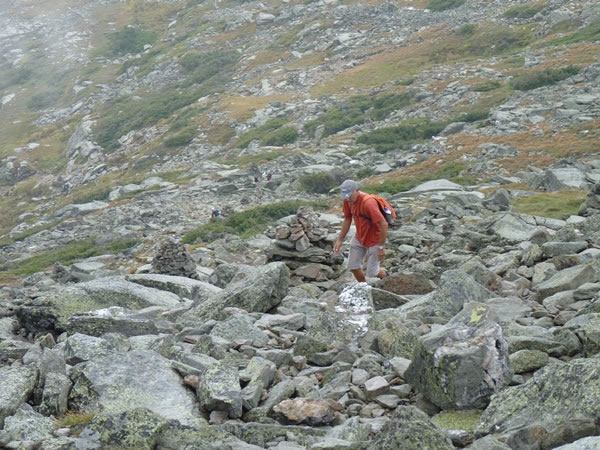 At 11:30 am, I saw this hiker coming up the trail towards me. We stopped for a brief chat. His accent (and the colour of his t-shirt!) led me to ask whether he was from the Netherlands. He was, indeed … well, originally, because Jake Maarse – an age-group champion long-distance skater – has lived in Canada since 1976. |
