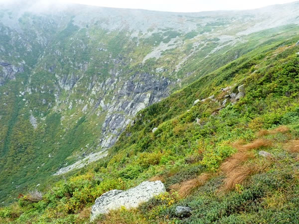 Looking down onto the Tuckerman Ravine headwall.