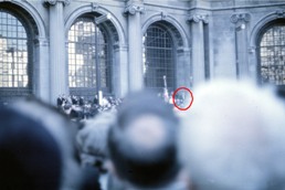Another important ingredient in political portraiture is luck. In addition to photographing politicians, in the 1970s I began photographing royalty as well (as my Portraits of Pomp show). I took some reasonably good shots of Prince Charles when he visited New Zealand in 1981, and was especially keen to get a good picture of his wife, Princess Diana, when she too came to New Zealand two years later. I slipped out of my office and went into town an hour or so prior to the scheduled start of the royal walkabout. I waited right next to the ropes along the route that the Prince and Princess of Wales would be taking. The crowd swelled considerably, but – given where I was standing – at least my view would not be obscured. When an American man tapped me on the shoulder and said, "Say, my little Emily can't see", I let his little Emily (a girl of about five) stand in front of me – not out of gallantry, but because Emily was so short that I knew she wouldn't prevent me from seeing or photographing the princess (Emily was so short, in fact, that her long hair kept getting caught on waist-level velcro on my parka!).