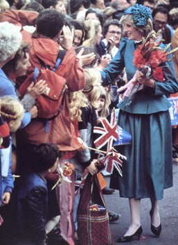 Then I had two lucky breaks. First, Princess Di came down my side of the street, the right-hand side, while Prince Charles worked the left-hand ropes. Second, Princess Di was accepting every bunch and bouquet of flowers that people in the crowd offered her – and little Emily had a small bunch of flowers that she wanted to give to the Princess of Wales. Armed with my camera and a telephoto lens, I got some unimpeded pictures of the Princess as she came closer and closer towards me. Finally, when she was directly in front of me, Princess Di saw little Emily and the flowers that she had picked for her, so Diana – a very tall and graceful young woman – bent right down in front of me to accept Emily's offering. When Princess Diana straightened up, she towered over me, but she looked directly at me … and then she spoke to me. They were words I will never forget: