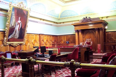 The 15-member Tasmanian Legislative Council chamber (with its prominent painting of a young Queen Victoria).