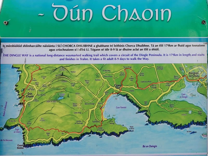 This is a photograph of the map on the Dingle Way information sign showing the route we would be taking in order to walk from Dingle to Dunquin.
