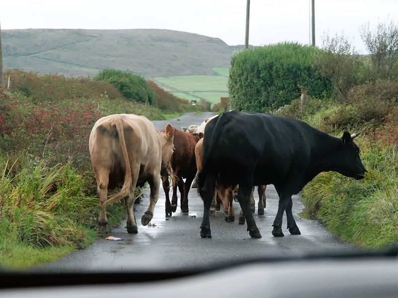 Mary Hurley collected us from the pub at 7:45 pm. The drive back to her B&B was interrupted by these cattle that had broken out of their paddock.