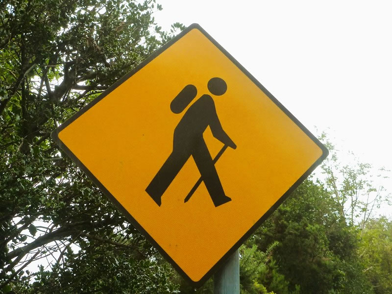 A road sign reminding motorists that they could encounter Dingle Way walkers on this route.