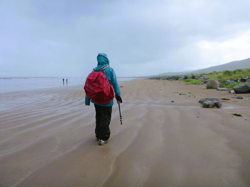 Day 4 (Sunday, 7 September 2025) – Cloghane (An Clochan) to Scraggane Pier: When we reached the beach, we turned right and began walking for ten-and-a-half kilometres / six-and-a-half miles on (what our Hillwalk trip notes described as) “the longest beach along the Wild Atlantic Way.” |