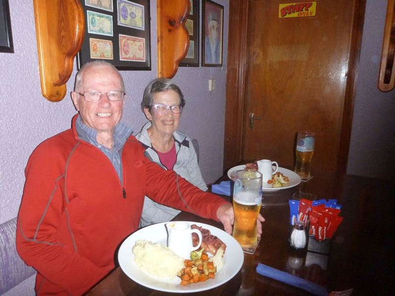 We enjoyed a well-deserved hearty pub meal: Annascaul sausages and mash.