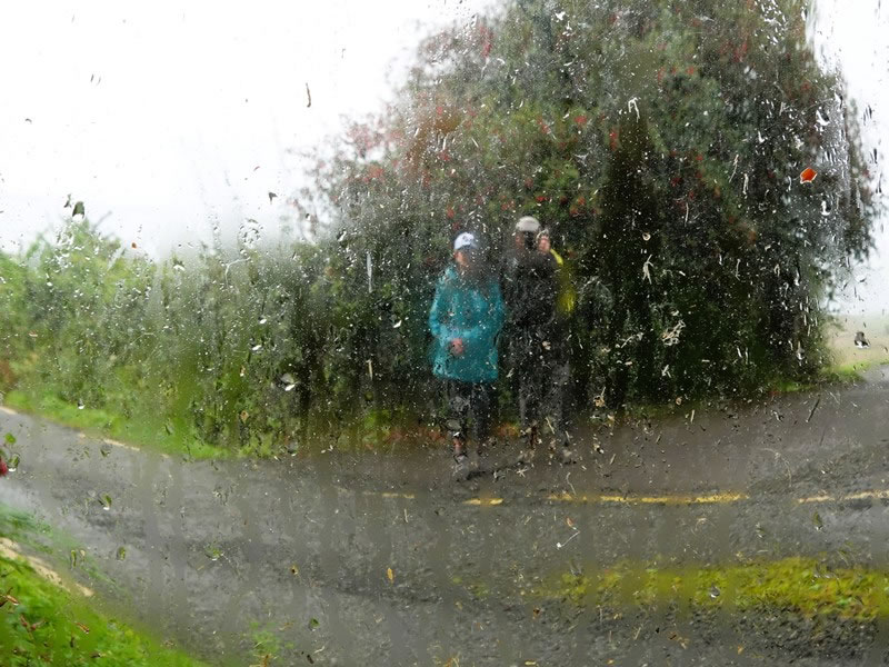 I thought the raindrops and dirt on a roadside mirror that we walked past helped create a Monet-like self-portrait of Heather and me.