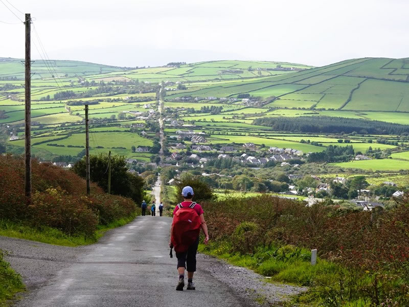 Day 6 (Tuesday, 9 September 2025) – Camp (An Cam) to Annascaul (Abhainn an Scail): A long straight road heading due west and down into Annascaul (and in case you are wondering whether it was a Roman road, the answer is no: the Romans never invaded Ireland). |