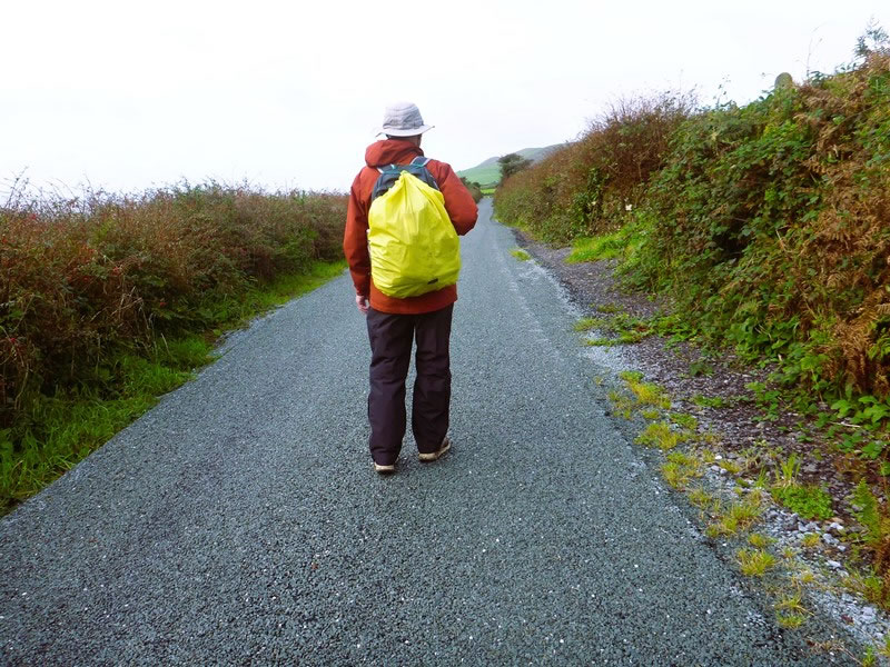 Day 7 (Wednesday, 10 September 2025) – Annascaul (Abhainn an Scail) to Dingle (Daingean Ui Chuis): During the morning, Heather took a photograph of me walking in front of her along one of the many narrow roads we followed during our seventh and final day walking the Dingle Way. |