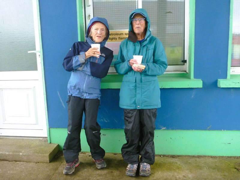 Day 7 (Wednesday, 10 September 2025) – Annascaul (Abhainn an Scail) to Dingle (Daingean Ui Chuis): … we ate our lunch and sheltered from the rain. Standing next to Heather in this photograph is a retired GP from England who was originally from Kerry and came back to the county every summer. She was a keen walker, and we had also met her in Annascaul the previous day. |