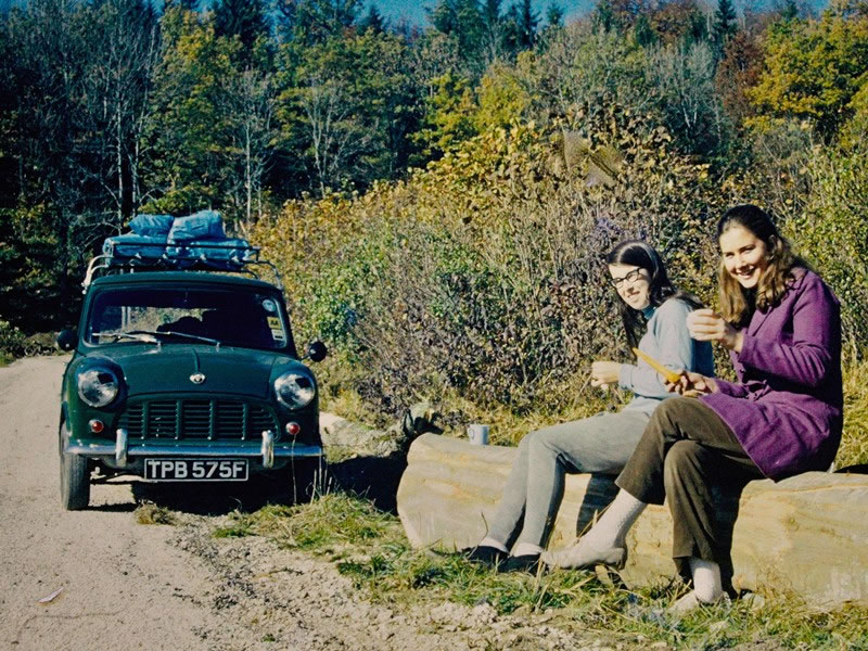 Day 47 (31 October 1969) – NEAR PONTARLIER: At 12:30 pm we left Switzerland and entered France. After we’d passed through Pontarlier, we stopped and enjoyed a long, leisurely lunch while sitting on a large log in the sunshine. Lyn Shephard is nearest the camera, and because she was travelling in the car with us, there was – as there had been when we’d had Charlie with us – a lot of luggage on the roof of our car. While we were having our lunch the next day (again sitting in the sun), we heard on the radio that England had just had its hottest and driest October for more than a century. Given the weather that Heather and I had experienced ever since we were in Copenhagen, I suspect the same was also true for much of Europe. |
