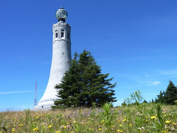 During the summer, fields of wildflowers ring Mt Greylock’s memorial lighthouse tower.