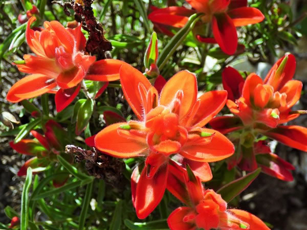The wildflowers on Guadalupe Peak made it an especially memorable mountain – one that will stand out for me for a long time. I can only echo Douglas Butler’s words about Guadalupe Peak in his book, A Walk Atop America: “There are good hikes. Sometimes there are great hikes. Occasionally everything comes together, creating a fantastic hike. This was such a hike. … Each bend in the trail brought wonderful sights”. I think these wonderful sights are desert paintbrush flowers. |