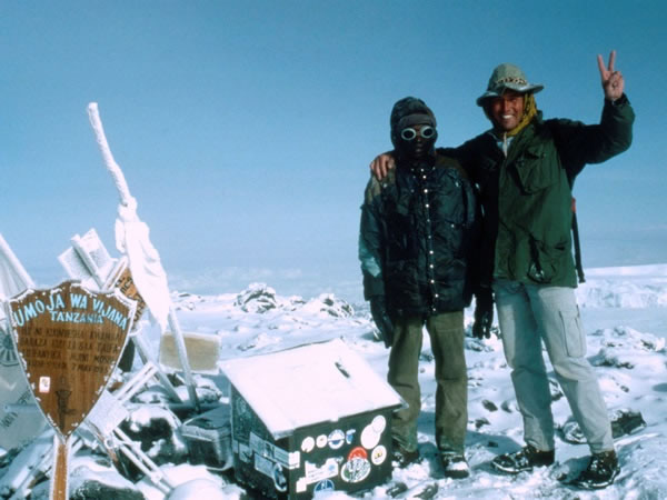 Philipp was once again the fittest and fastest of our party. Together with an assistant guide, he got to Uhuru Peak long before anyone else. The rest of us were far slower: the climb from Gillman’s Point to Uhuru Peak – an altitude gain on only 210 metres / 689 feet – took us about an hour and three-quarters. Even though I was a very fit long-distance runner (with a marathon time of 2.53.53 under my belt), I found myself occasionally gasping for air. At best, my breathing was laboured and rasping. |