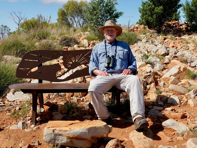 Day 2 (Saturday, 29 April 2023) – Section 8 of the Larapinta Trail (i.e., from the Serpentine Gorge Carpark to the Serpentine Chalet Dam): … the Friends of the Larapinta Trail have erected a seat, encouraging people to “enjoy the view.” Bob duly did so, and … |