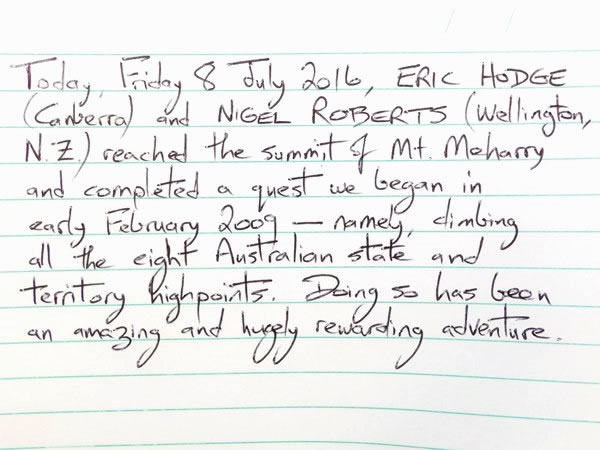 Eric suggested that I should write our entry in the summit’s logbook, and this is what I said.