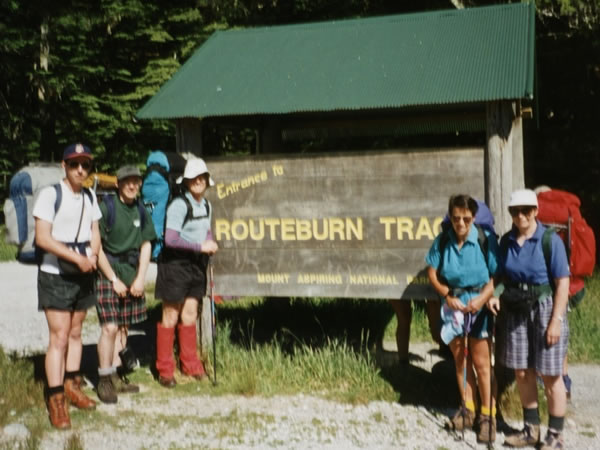 We asked a fellow ‘Backpackers Express’ bus passenger to take a photograph of the five of us at the start of the track. Unfortunately, the resultant picture was not very good, but I have included it in this web-album because it’s the only picture of all of us. From left to right, at 10:30 am on Monday, 30 December 1996, are Evan Roberts, Keith McLeod, Nigel Roberts (wearing the silliest, floppiest hiking hat I’ve ever had), Heather Roberts, and Joy McLeod. |