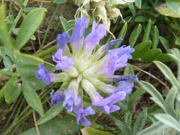 I don’t know what this plant is, with its fleshy blue and white flowers.