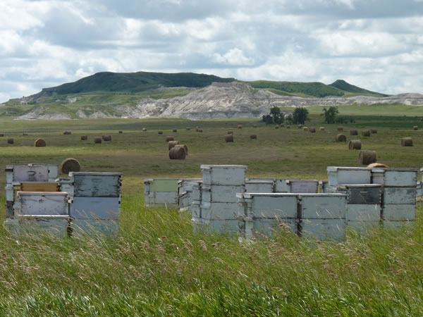 Before we left the trailhead, I took this photograph looking back through a farm’s beehives and up at White Butte.