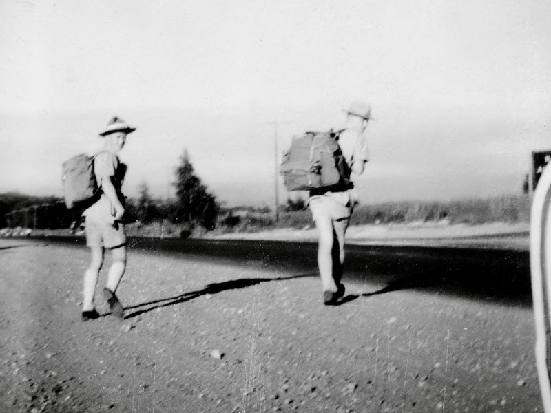 This photo of Stuart (on the left) and me setting off at the start of a two-week hitch-hiking holiday to and around the Cape Province was taken by our mother, Lilian, on 4 January 1961.