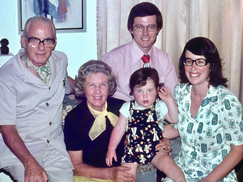 After spending the bulk of my first sabbatical leave in Denmark – living in Århus from September 1976 until January 1977 – Heather, Evan, and I returned to New Zealand via South Africa and Australia. This picture of the three of us and my parents was taken in Johannesburg in February 1977. |