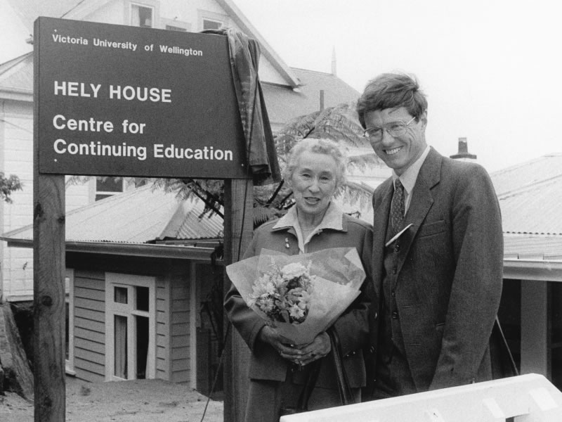 My initial appointment at the Victoria University of Wellington (VUW) was as the university’s Director of Continuing Education, a position I held from 1 February 1981 till 24 January 1994, before reverting to full-time political science teaching. In 1986 VUW’s Centre for Continuing Education moved into new premises which were named after a former director, Arnold Hely. This picture of Arnold Hely’s widow and me was taken during the opening ceremonies for the newly refurbished building. |