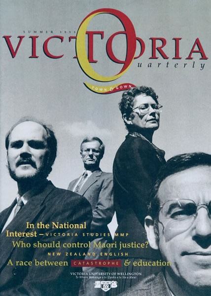 In a binding nationwide referendum held in November 1993, New Zealand voted to discard its first-past-the-post electoral system for parliamentary elections and to use a form of proportional representation instead. In 1995 three colleagues and I won a million-dollar plus multi-year research grant to study the consequences of this major change to New Zealand’s political system, and the summer 1995 edition of the Victoria Quarterly magazine featured the four of us in its cover story. From left to right in this dramatic cover photograph (which is reminiscent of posters for The Godfather and GoodFellas films) are Jonathan Boston, me, Elizabeth McLeay, and Stephen Levine. |