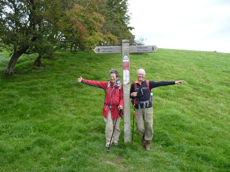 A highlight of 2015 for Heather and me was walking the 285-kilometre / 177-mile long Offa’s Dyke Path, which – broadly speaking – follows the England-Wales border. Once again, Bob Slyker and Peggy Wall were our hiking companions. This photograph of Heather and me was taken on 23 September 2015 at the half-way mark of our walk. I’m pointing towards Chepstow, 142.5 kilometres to the south, where we began our walk; Heather is pointing to Prestatyn, 142.5 kilometres to our north, which is where we were heading. |