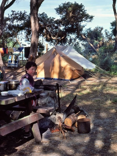 We arrived at Bark Bay at 3:15 pm, having done the 8.4 kilometre / 5.2 mile walk from Anchorage deliberately slowly and easily. Unlike the previous afternoon, there had been no need to rush. As a result, we took six-and-three-quarter hours to do what DoC nowadays suggests is a three-hour hike. We liked Bark Bay so much – and the weather was so good – that we camped here for two nights. |