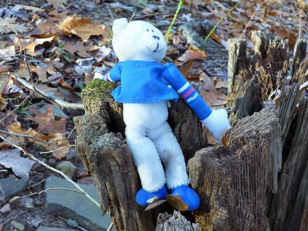 … I encountered this bear on a tree stump beside the trail up Backbone Mountain!