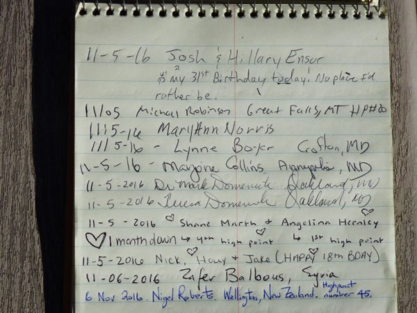 … I wrote down the date, my name, the place I come from, and a brief comment in the summit register. It was clearly international visitors’ day on Backbone Mountain: up until 10:30 am on 6 November 2016, the only people to have signed the summit register were Zafer Balbous from Syria and Nigel Roberts from New Zealand. However, all the time I was hiking up the mountain, at the summit, and hiking down from it, I saw neither Mr Balbous nor anyone else. I had Backbone Mountain to myself. |