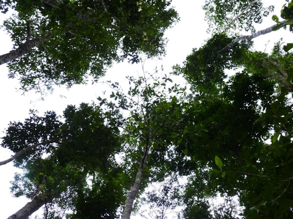 Looking up at the rain forest canopy.