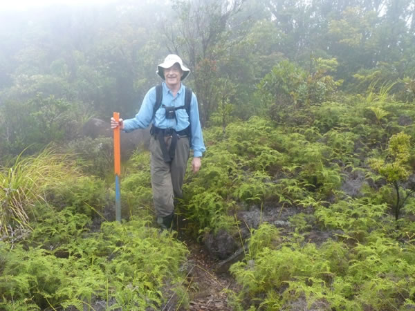 After the second boulder field, there’s a small patch of open ground with what look like snow poles to mark the route.