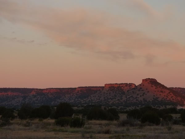 At 7:50 am, the first rays of the sun struck the table-top mesas on the western edge of the broad valley beneath Black Mesa.