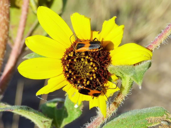 More milkweed bugs (this time on what I think is a wild sunflower).