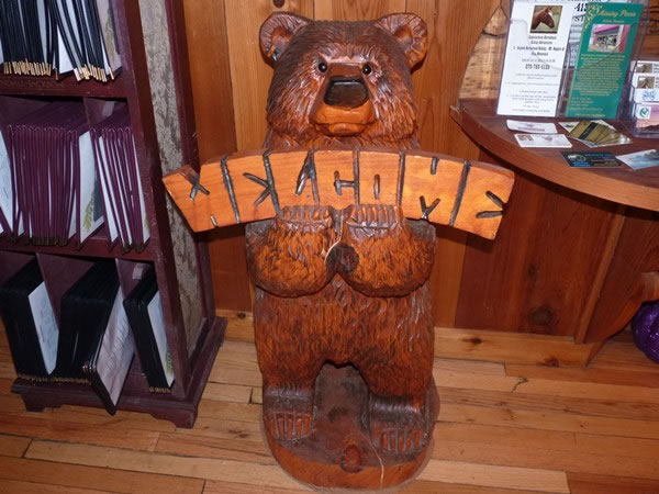 “Basecamp” for my “assault” on Black Mountain was the Old Mill Inn in Damascus, Virginia. I’d stayed there prior to climbing Mt Rogers, the Virginia highpoint, on 1 November 2015, and happily returned to the inn afterwards, where this bear bearing a “Welcome” sign greeted me. |