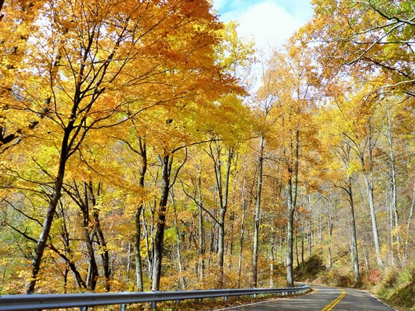 Trees resplendent in their fall colours lined both sides of Virginia state route 160 as I made my way up towards Black Mountain.
