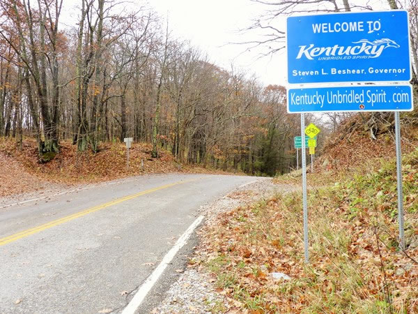 I entered Kentucky at 11:50 am on Monday, 2 November 2015. (In what is, in effect, a political scientist's footnote, I should point out that the Governor, Steven Beshear, was welcoming me to the state very near the end of his time in office: the next day was gubernatorial election day in Kentucky and because Beshear had already served eight years – two full terms – as Governor, term limits meant he was ineligible to stand again. Beshear's successor, Matt Bevin, was elected on 3 November and took office the following month.) |