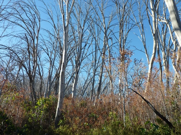 Above the emergency refuge, there was a large area of burnt trees and saplings.