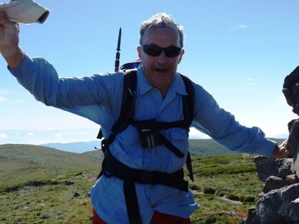 Eric, triumphant at the summit of Mt Bogong, after his dash to the top.