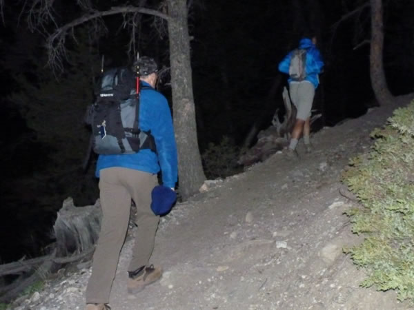 In the pre-dawn darkness, Eric (left) and Jeff (right) made their way up what Charlie and Diane Winger's book,