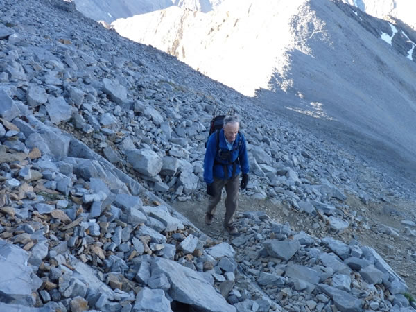 Looking back at Eric as he makes his way up the final section of Borah Peak.
