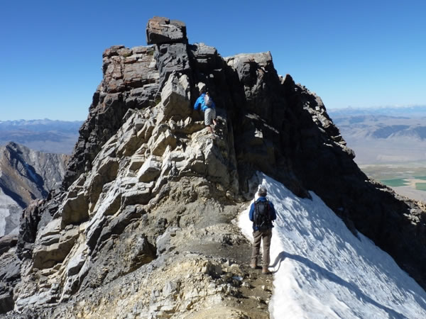 As Jeff began to climb up the notch, Eric made his way across the snow-bridge's moat.
