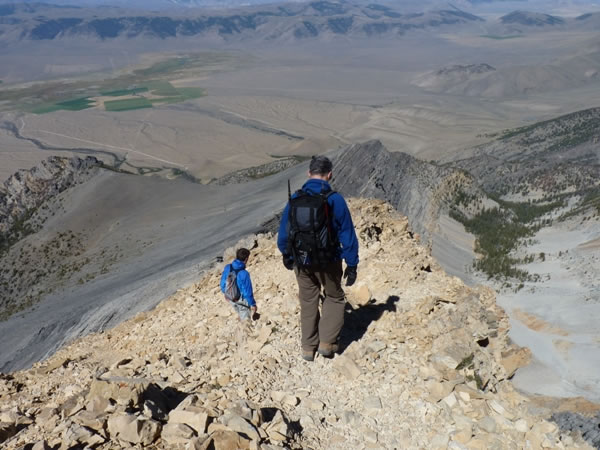 Jeff (left) and Eric (right) walking down a rough path on the eastern edge of Chicken Out Ridge.